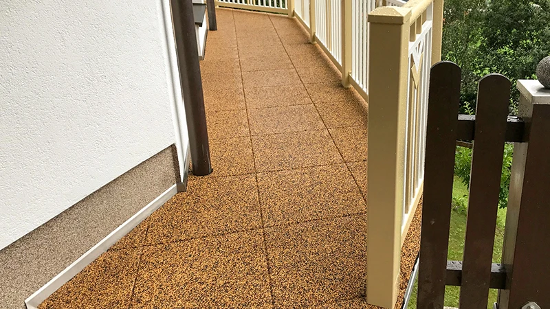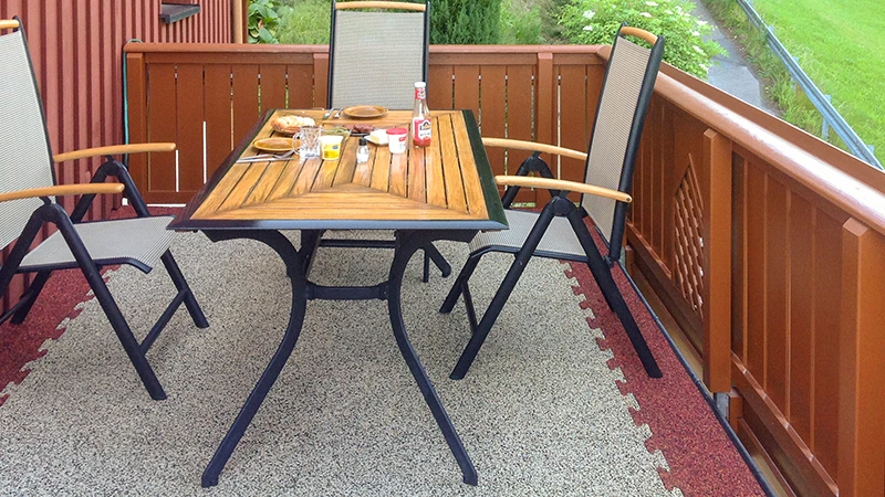 WARCO-plattor består av ca 90 % gummigranulat och 10 % polyuretanbindemedel. Detta material är särskilt robust och väderbeständigt, vilket gör det idealiskt för balkonger och terrasser. En ytterligare fördel är den enkla installationen eftersom plattorna bara läggs – ingen skruvning eller limning krävs.