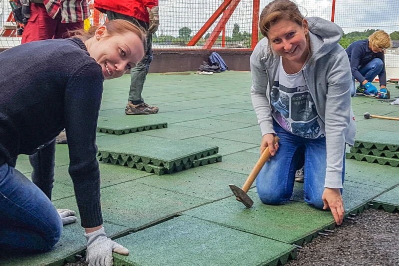 Fallschutzplatten outdoor einfach verlegen auf stabiler Tragschicht.