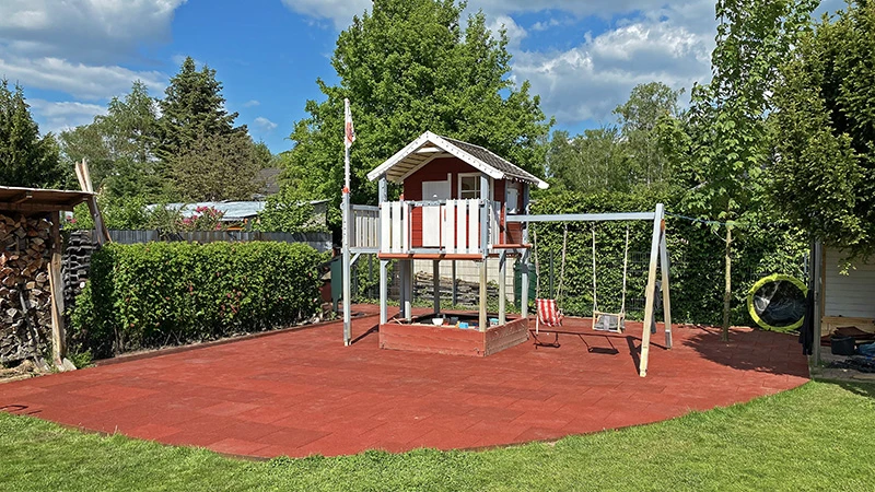 - “Diese Fallschutzplatten platzierten wir unter einem Klettergerüst im Garten unseres Kindergartens. Sie erfüllen optimal ihren Zweck.”