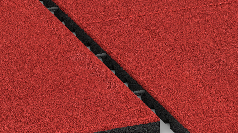 Mattorna tillverkas av PU-bundet gummigranulat och är elastiska med en halksäker, greppvänlig yta. Tjocklek och densitet avgör stötdämpning och bärförmåga. Det stora formatet minskar antalet fogar, förenklar installationen och ger en homogen yta. Enskilda mattor kan enkelt bytas ut vid behov.