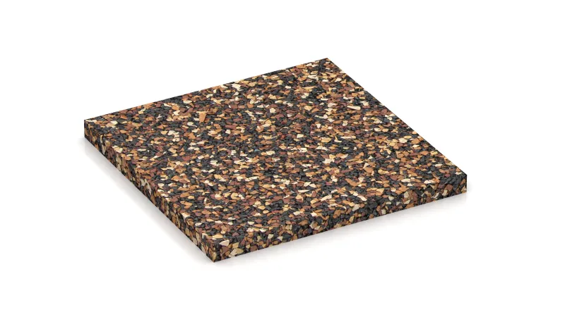 Eigenschaften wie Materialstruktur, Elastizität, Haptik und Dichte des Farbmusters weichen in der Regel von denen des letztendlich gewählten Produktes ab. Denn die praktischen Farbmuster werden, ähnlich wie die Farbbleche beim Autohändler, nur zum Zweck der Darstellung des Farbdesigns gefertigt. Dazu wird eine großformatige Platten angefertigt, danach gespalten und in handliche Stücke geschnitten. An Rand und Unterseite des Farbmusters sind daher in der Regel Schnittkanten sichtbar.