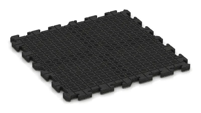 Varje matta är försedd med en exakt formgjord pusselkoppling som är enkel att montera med perfekt passform. Den omgivande fasen säkerställer ett rent och ordnat fogmönster och ger ytan ett högkvalitativt utseende. Resultatet är en stabil, formslutande golvyta.