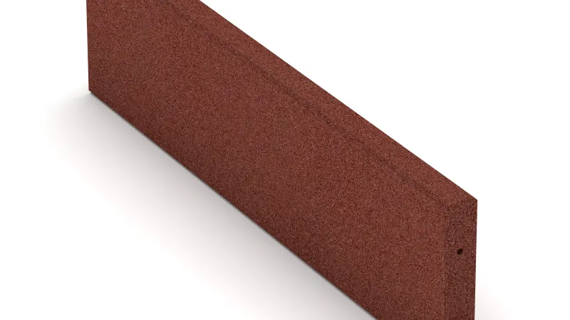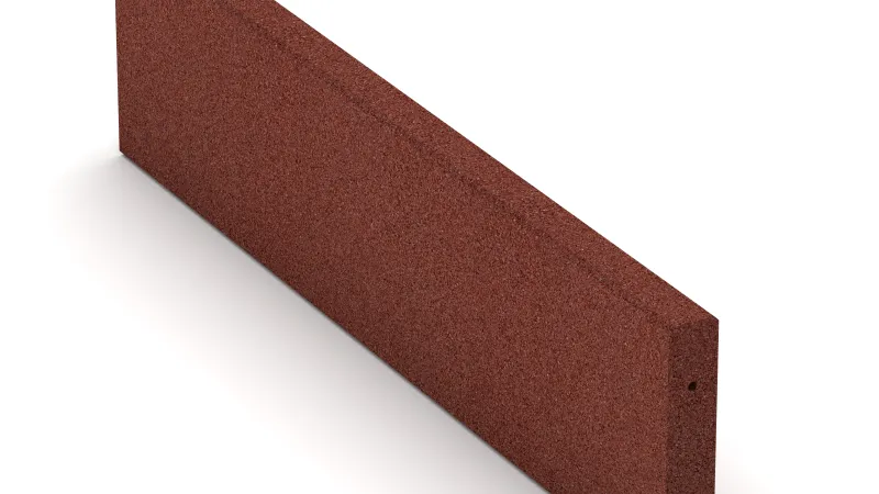 Tillverkad av PU-bundet ELT-gummigranulat (End-of-Life Tyres) är kantstenen elastisk, väderbeständig och formstabil. Den är 100 cm lång, 25 cm hög och 5 cm tjock. Den lätt porösa, halksäkra ytan är fjädrande och stötdämpande. Tack vare sin motståndskraft mot frost, fukt och UV-strålning behåller materialet sina egenskaper år efter år.