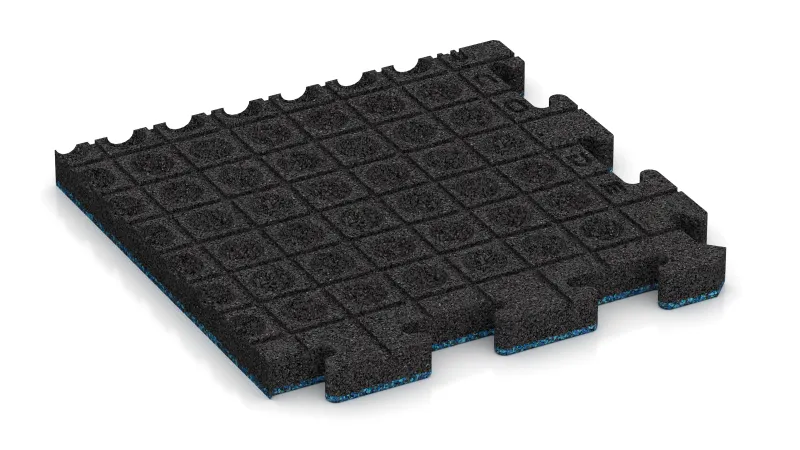Hörnplatta HD säkerställer en exakt och hållbar hörnfinish på ytor lagda med högdensitetsplattor. Varje enhet motsvarar en fjärdedel av en hel pusselplatta: innersidorna har det välkända pussellåset och passar exakt ihop med övriga plattor, medan yttersidorna är raka och bildar tydliga avslutningskanter. Resultatet blir en robust och visuellt enhetlig ram runt hela ytan.