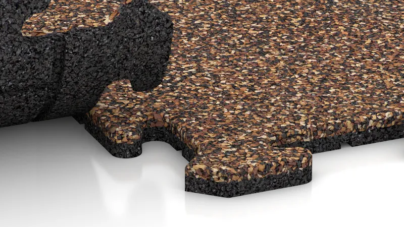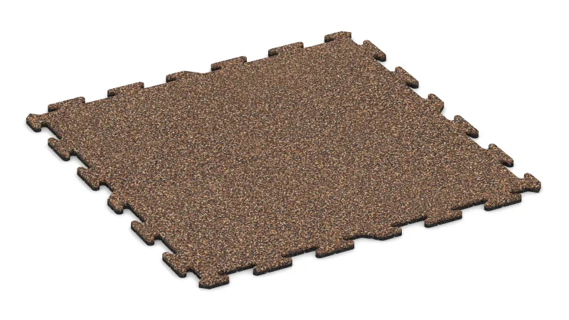 Golvet finns i två utföranden: antingen helt av PU-bundet ELT-gummigranulat (ELT = End of Life Tyres) eller tvåskiktat med ett slitlager av EPDM-gummi. EPDM-ytan är genomfärgad, UV-beständig och färgbeständig. Materialet är fritt från skadliga ämnen och helt säkert vid direkt kontakt med hud eller tassar. Jämfört med standardplattor är HD-versionen tätare, vilket gör den mer slitstark, mindre vätskegenomsläpplig och något mindre elastisk – men med samma säkra grepp.
