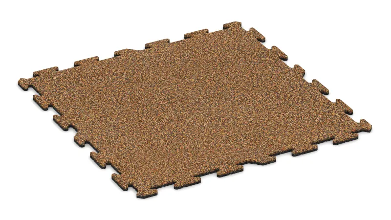 Golvet finns i två utföranden: antingen helt av PU-bundet ELT-gummigranulat (ELT = End of Life Tyres) eller tvåskiktat med ett slitlager av EPDM-gummi. EPDM-ytan är genomfärgad, UV-beständig och färgbeständig. Materialet är fritt från skadliga ämnen och helt säkert vid direkt kontakt med hud eller tassar. Jämfört med standardplattor är HD-versionen tätare, vilket gör den mer slitstark, mindre vätskegenomsläpplig och något mindre elastisk – men med samma säkra grepp.