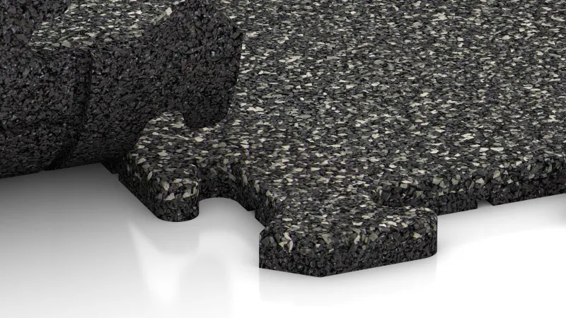 Plattans bas består av PU-bundet ELT-gummigranulat. Som tillval kan ovansidan förses med ett färgat EPDM-slitskikt som är genomfärgat, UV-beständigt och mycket hållbart. EPDM är dessutom fritt från skadliga ämnen och uppfyller de stränga kraven för småbarnsleksaker – helt säkert vid direkt hud- eller tasskontakt.
