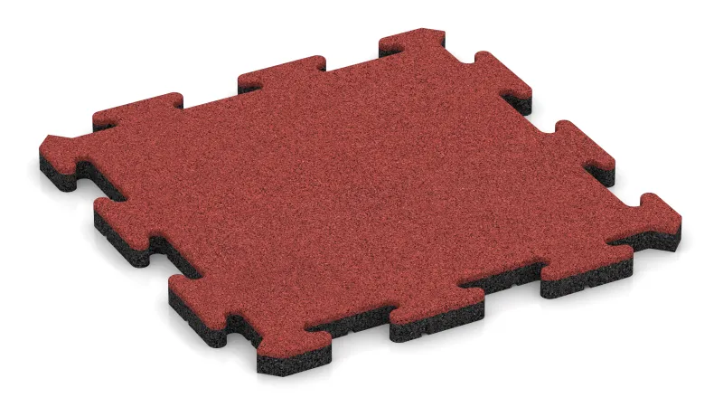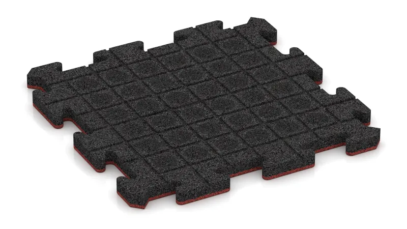 Den gjutna pusselkopplingen skapas direkt vid pressningen och garanterar en exakt passform. De lätt rundade fasade kanterna ger ett mjukt och harmoniskt fogmönster. I naturinspirerade färgblandningar av olika EPDM-granulat blir fogarna knappt synliga, vilket skapar ett nästan sömlöst helhetsintryck.