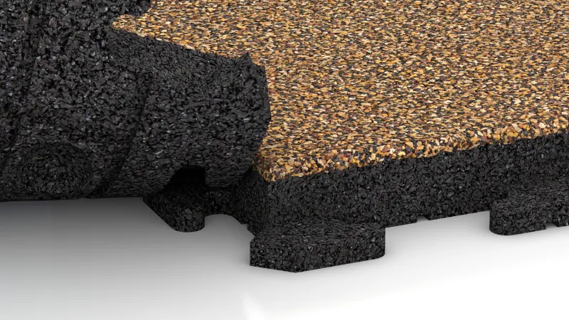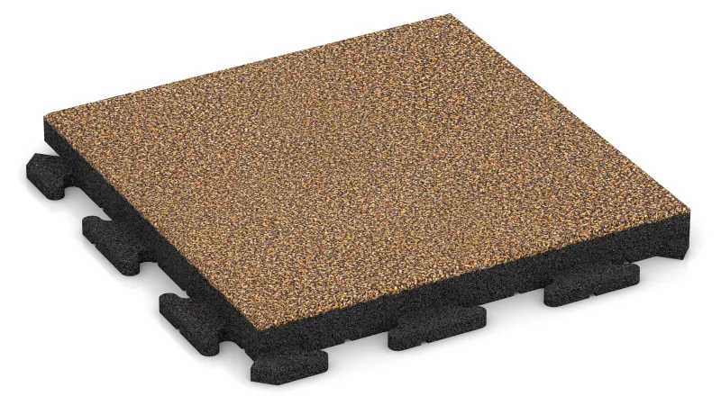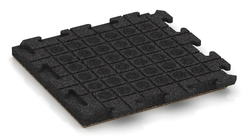 Komfort & säkerhet. Ytan är halksäker och ger säkert fotfäste i både torrt och vått väder. Den elastiska strukturen dämpar gångljud och stötar, vilket gör plattan bekväm och skonsam mot lederna.