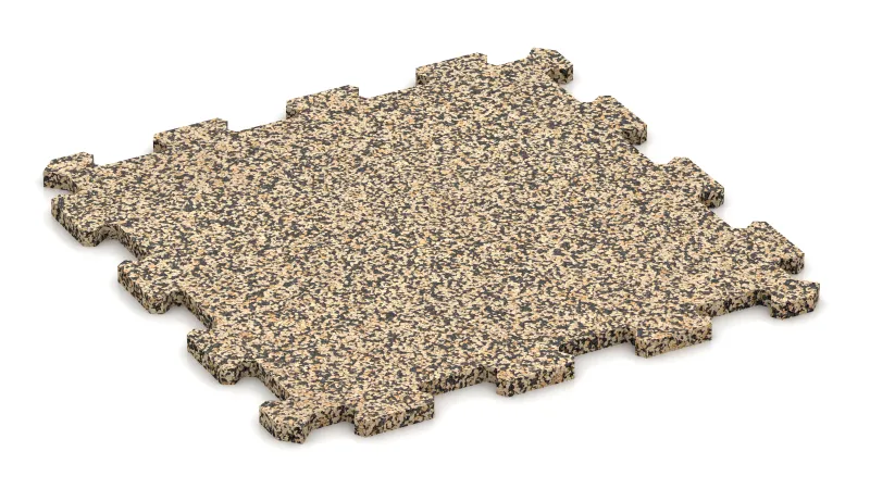 Trappflisan tillverkas av PU-bundet gummigranulat. Stora block pressas, får mogna och skärs sedan med hög precision. På så sätt skapas kalibrerade plattor med exakta mått och en jämn yta – en tydlig fördel vid läggning och i slutresultatet.