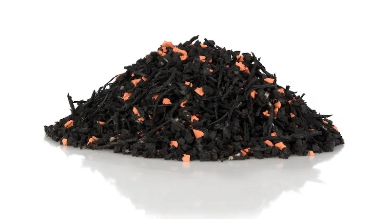 Trappflisan tillverkas av PU-bundet gummigranulat. Stora block pressas, får mogna och skärs sedan med hög precision. På så sätt skapas kalibrerade plattor med exakta mått och en jämn yta – en tydlig fördel vid läggning och i slutresultatet.